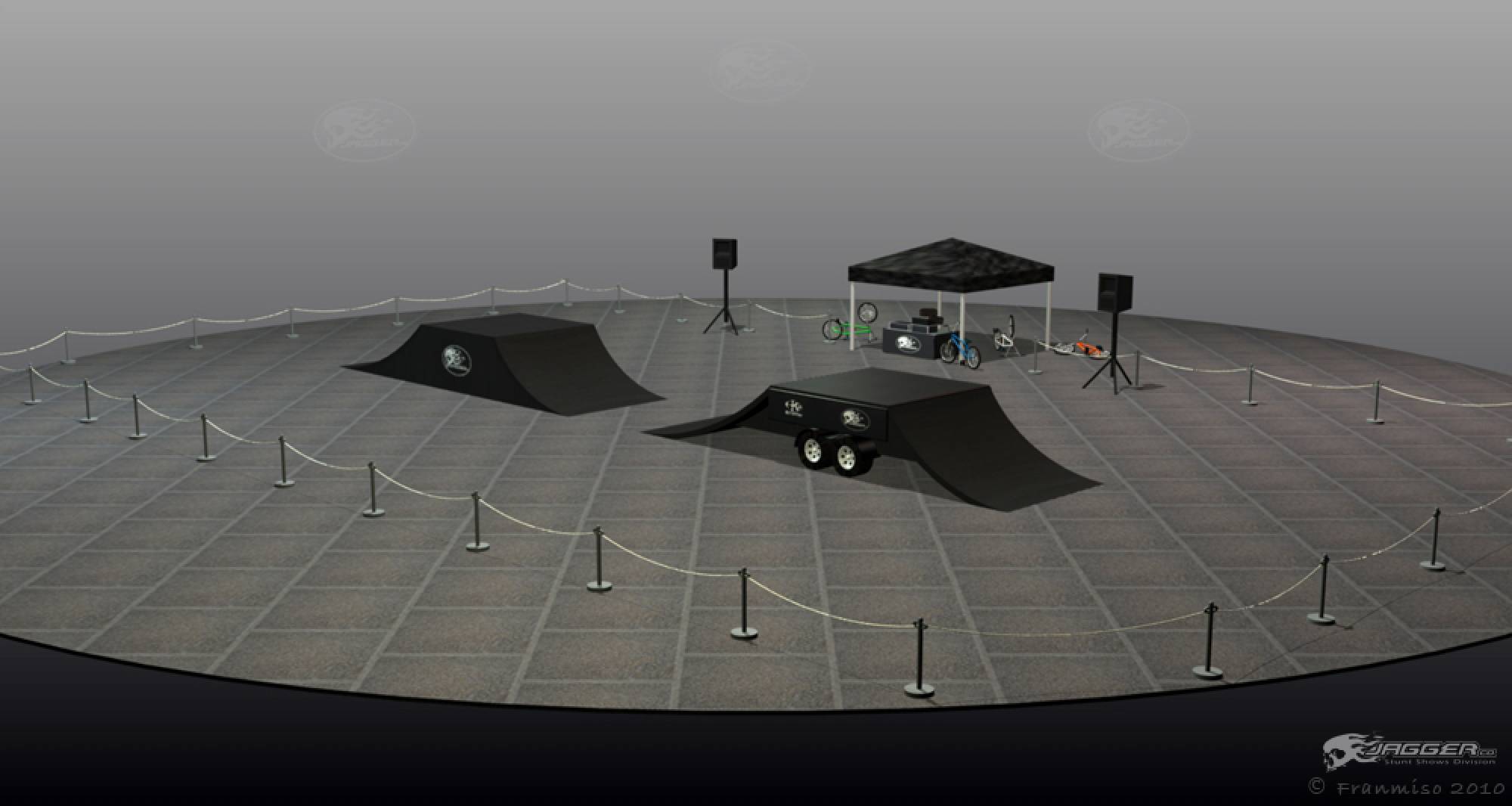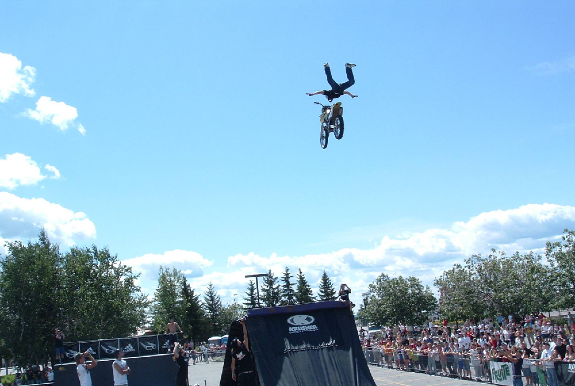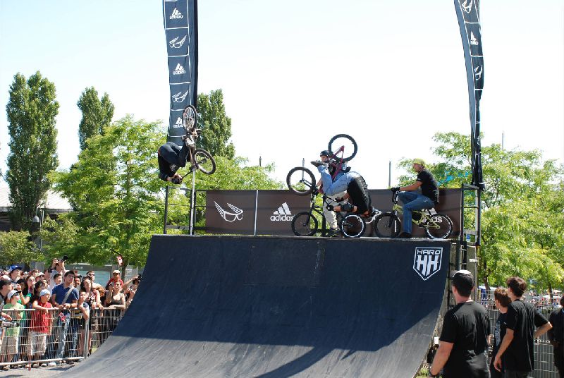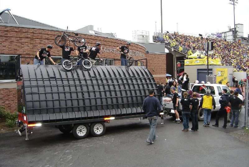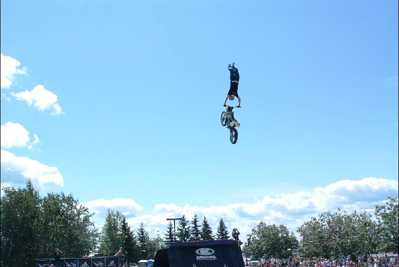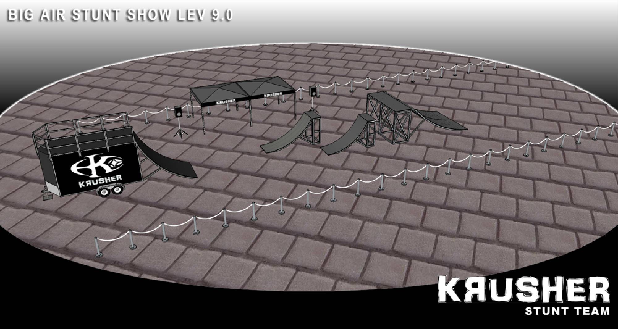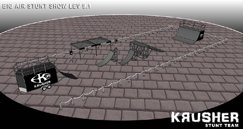 The crowd will be amazed by technical maneuvers on the flat ground. The ramp is introduced and lip-tricks are performed. The last flatland runs are performed. Last but not least the ramp is used for the most spectacular part of the show; the high flying stunt. This is the highlight demo, the crowd will see daredevil flying thought the air at the height of 15 feet and performing stunts such as 360 degree turns, tailwhips, barspins and of course the back flip witch will throw them into a screaming frenzy. Twenty minutes of extreme entertainment are provided by performers and one announcer, one-three shows per day.
