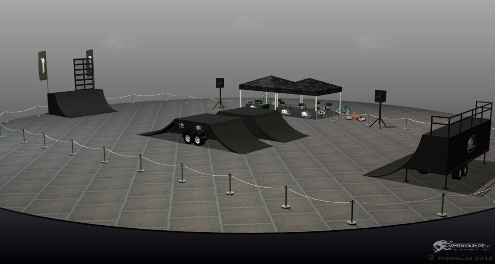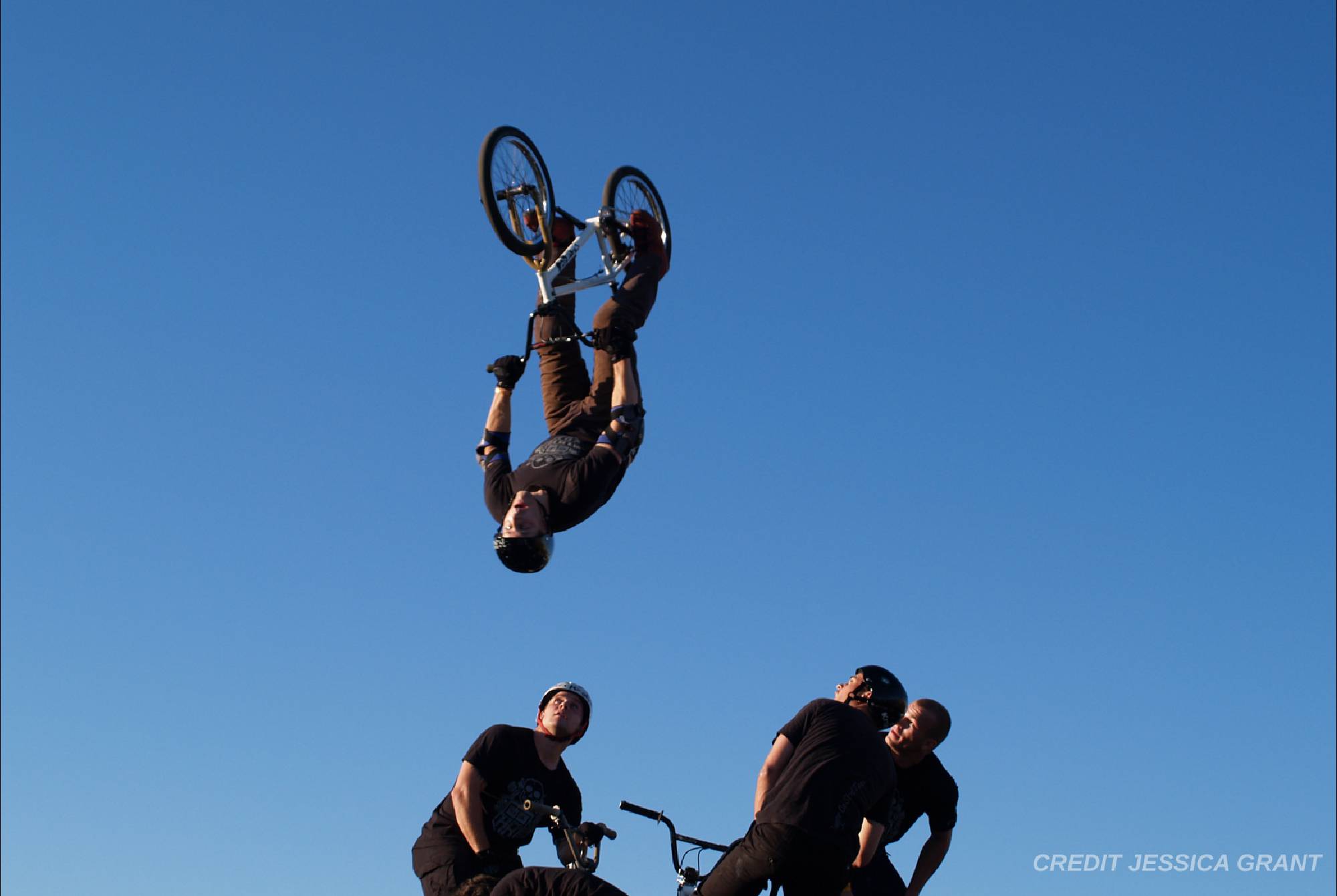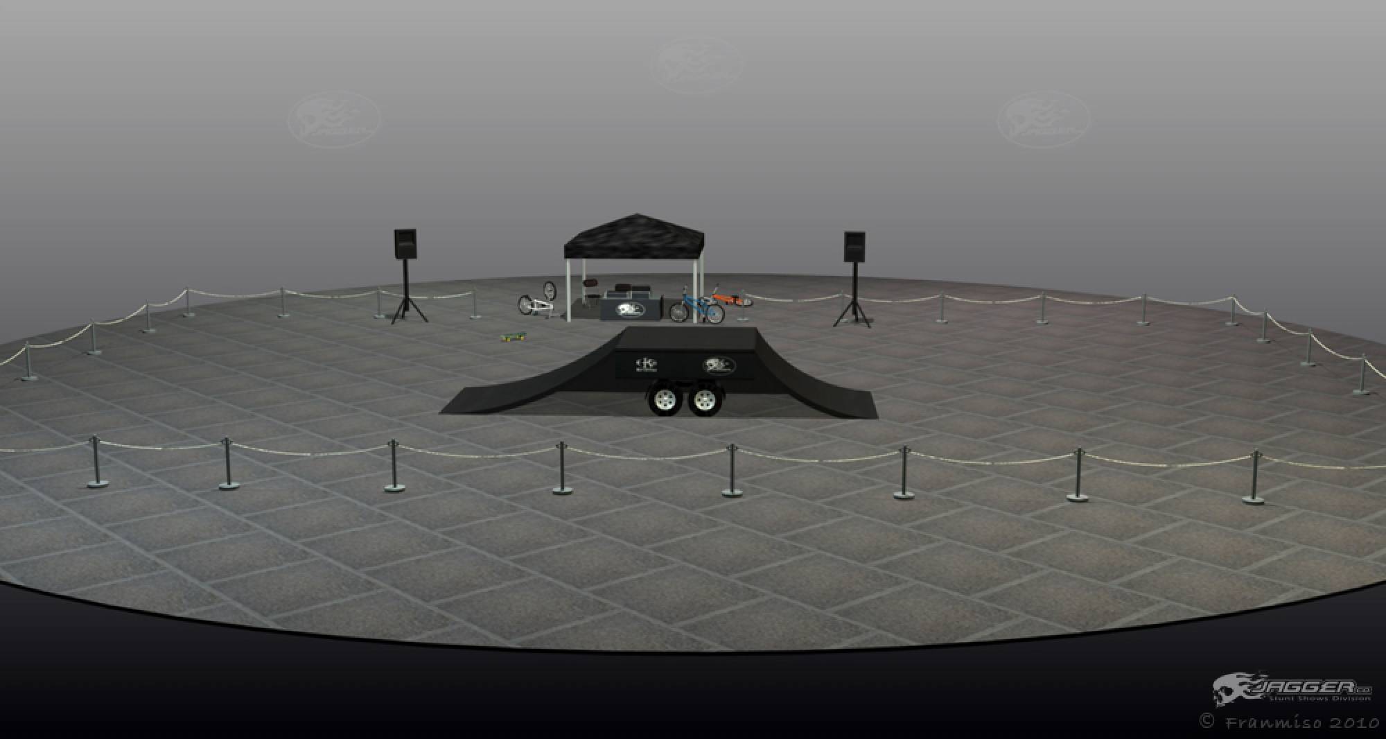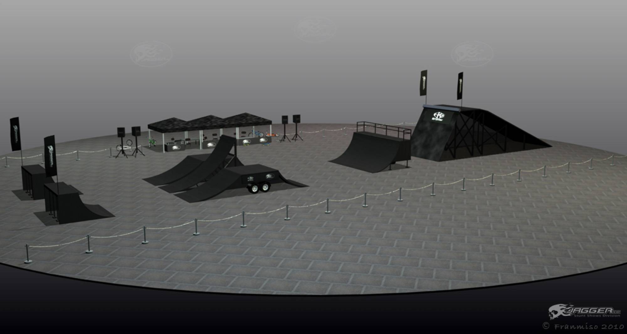 The crowd will be amazed by technical maneuvers on the flat ground. The ramp is introduced and lip-tricks are performed. The last flatland runs are performed. Last but not least the ramp is used for the most spectacular part of the show; the high flying stunt. This is the highlight demo, the crowd will see daredevil flying thought the air at the height of 15 feet and performing stunts such as 360 degree turns, tailwhips, barspins and of course the back flip witch will throw them into a screaming frenzy. Twenty minutes of extreme entertainment are provided by performers and one announcer, one-three shows per day.