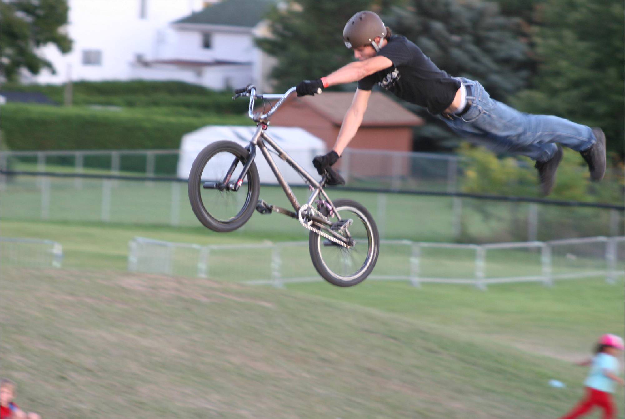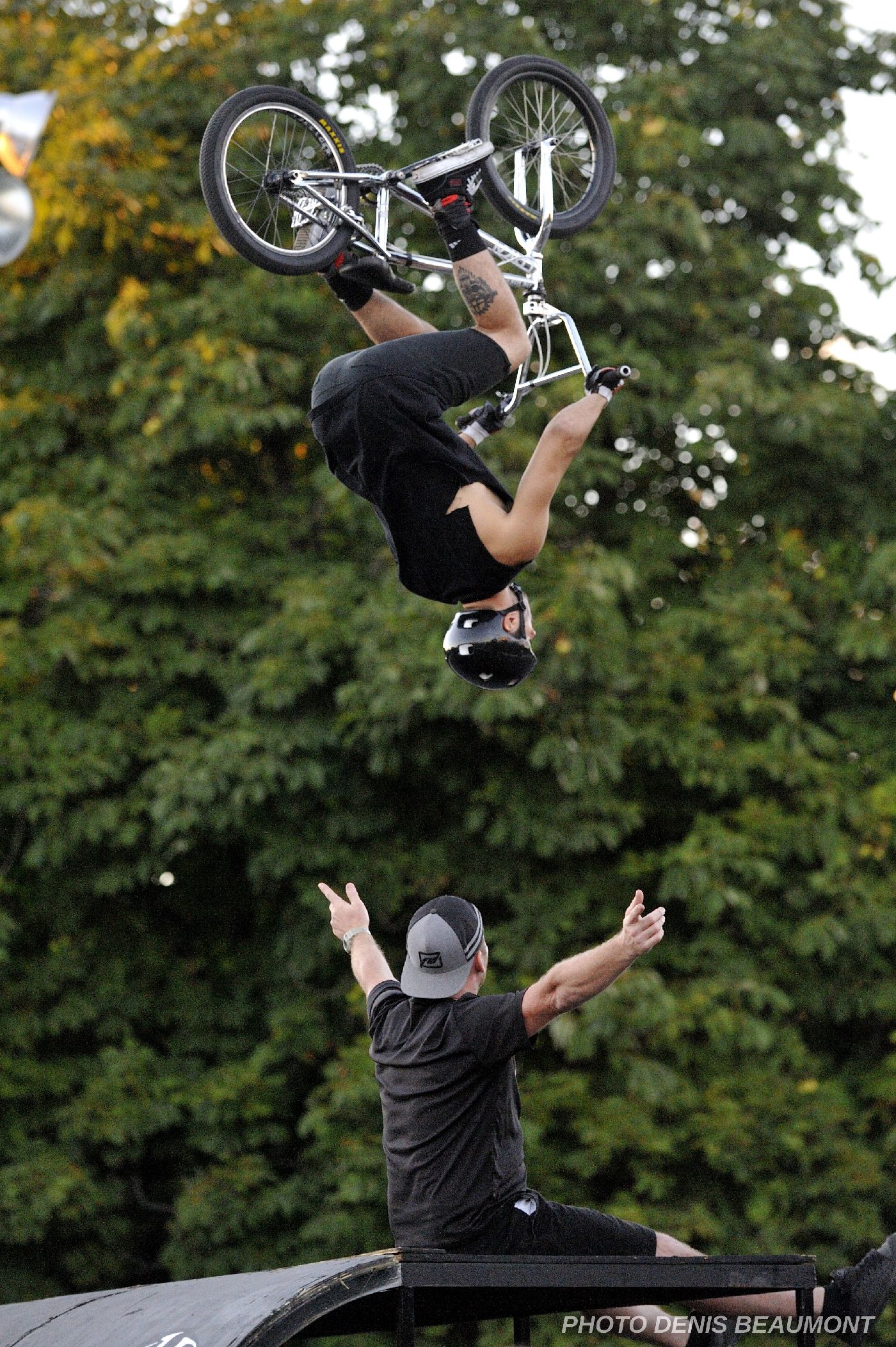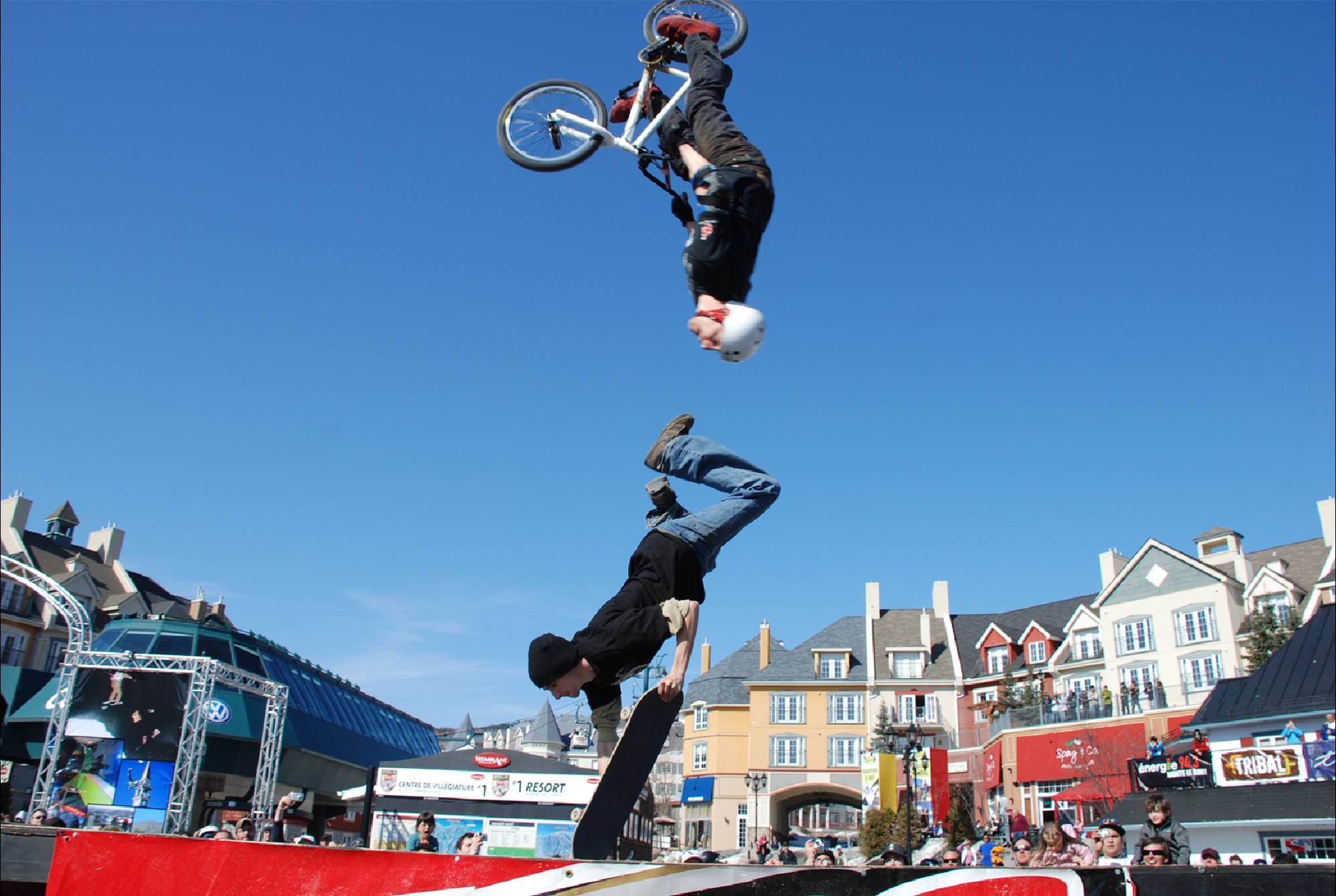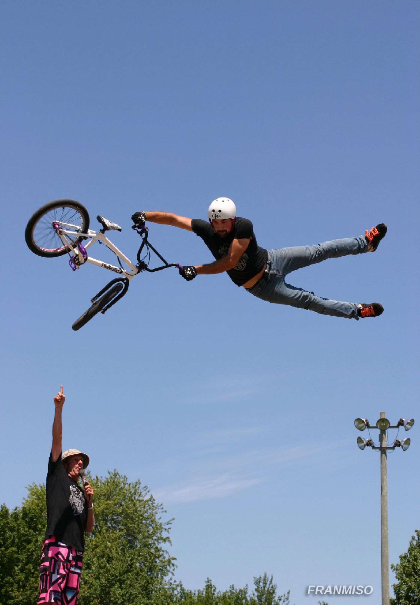 The crowd will be amazed by technical maneuvers on the flat ground. The ramp is introduced and lip-tricks are performed. The last flatland runs are performed. Last but not least the ramp is used for the most spectacular part of the show; the high flying stunt. This is the highlight demo, the crowd will see daredevil flying thought the air at the height of 15 feet and performing stunts such as 360 degree turns, tailwhips, barspins and of course the back flip witch will throw them into a screaming frenzy. Twenty minutes of extreme entertainment are provided by performers and one announcer, one-three shows per day.
