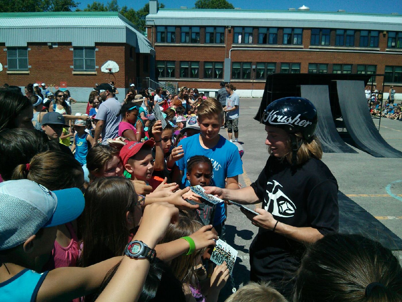 Athletes always take times with kids and public after each show, sharing autographs, post cards, stickers and take pictures.
