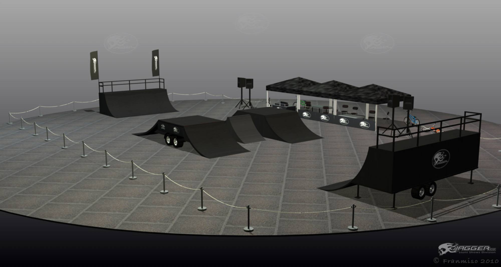 We have multiple foldable ramps trailer for a fast set up and tear down.