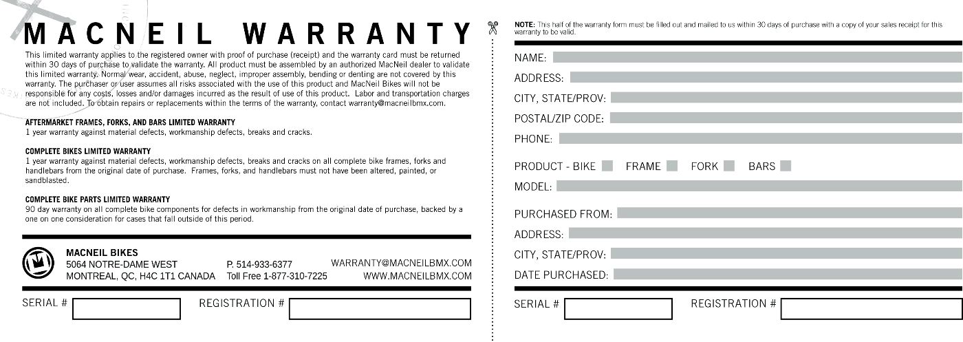 WARRANTY MACNEIL BIKES